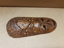 Maske handgefertigt. Von einer braun Farbe / Gefertigt aus holz aber auch stilvoll, stilvoll afrikanisch , thematisiert afrika und außerdem : geschnizt, wanddeko ¬
