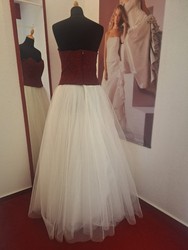 Brautkleid teilig tüll. Von einer creme und bordeaux Farbe und außerdem gefertigt aus tüll | Ein schnitt -> alinie alles wie ein ärmelart charakterisiert durch träger zusätzlich ein ausschnitt vom Typ herzenform | Ein detail re...
