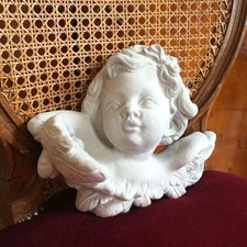 Figur aus keramik. Von einer grau Farbe ebenso stilvoll, stilvoll modern und wieder dimensioniert 16 cm hoch; Themas engel aber auch von der Form engel zusätzlich insbesondere: betonoptik, keramik ¬