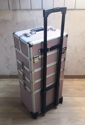 Trolley aus leicht. Von einer rosa Farbe und wieder in aluminium / Ein geschlecht repräsentiert durch damen alles wie ein ausführung : hartschale sowie einschließlich: friseurkoffer, beauty ¬
