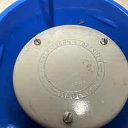Küchenwecker aus kunststoff. Der Marke tupperware · Von einer blau gelbgrün Farbe · Hoch 7 cm · Von der Form rund alles wie unter anderem: küchenwecker, eieruhr ¬