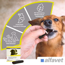 Ergänzungsfuttermittel alfavet; ein herstellernummer : hs058; Ein bestandteil vom Typ grünlippmuschel; Ein formulierung vom Typ pulver; ein hundealter gleichwertig zu senior; U.a.: ¬