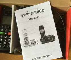 Schnurgebundenesschnurloses telefon combo aus kabellos. Der Marke swissvoice - Von einer schwarz Farbe - Modell xtra 2355 - Ein mobilteilfrequenz spezifiziert als dect standard aber auch insbesondere: großtastentelefone, duo ¬