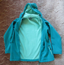 Jacke aus mit kapuze. Der Marke tony brown und außerdem von einer türkis Farbe , stilvoll, stilvoll softshelljacke