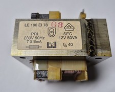 Transformator erea. Von einer schwarz Farbe - Ein Modell e 12 sc 50 sa sowie wiegt ungefähr 950 g. - Einer Länge 180 mm - Mit einer Breite von breit - In einer Höhe von 36 mm - Einschließlich: 12v, 50w. Gebraucht. Deutschland ¬